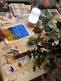 The workshop includes a watercolour wreath painting and gouache bauble painting which is guided but if preferred, you can free paint.